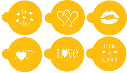 These one layer stencils are made of 10 mil food grade plastic for high quality repeated use. The patterns each fit within a 2" or 5cm diameter circle. Perfect for Valentine chocolates, cupcakes, and cookies goodies.
