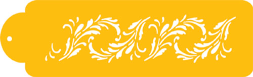 This beautiful feathered scroll border measures 2.5" H x 10"W and is made of durable 10 mil food grade plastic for high-quality, professional, repeat use. This side border design can be combined with our Feather Scroll Corner design (C161) to create an elegant cake.