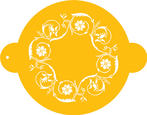 This flower scroll cake top design measures 7.75" in diameter and is made of 10 mil plastic for high-quality, professional, repeat use. This stencil can be combined with our Flower Scroll side (C119T) to create an exquisite cake.