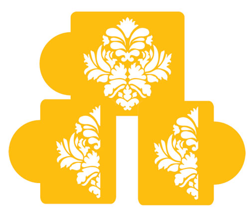 | Description | This stencil is the third tier pattern shown on the five-tier cake in the Martha Stewart Weddings - Spring 2008 issue. The full middle damask medallion measures 3.7"H x 3.5"W or 9.25 cm H x 8.75 cm W and is cut out of 10 mil, durable food-grade plastic. |