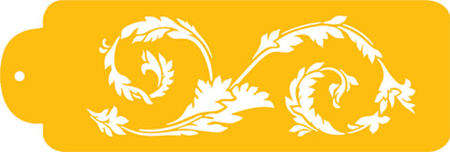 This stencil measures 3"H x 8.25"W or 20.6 x 7.5 cm and is made of durable 10 mil food grade plastic for high-quality, professional, repeat use