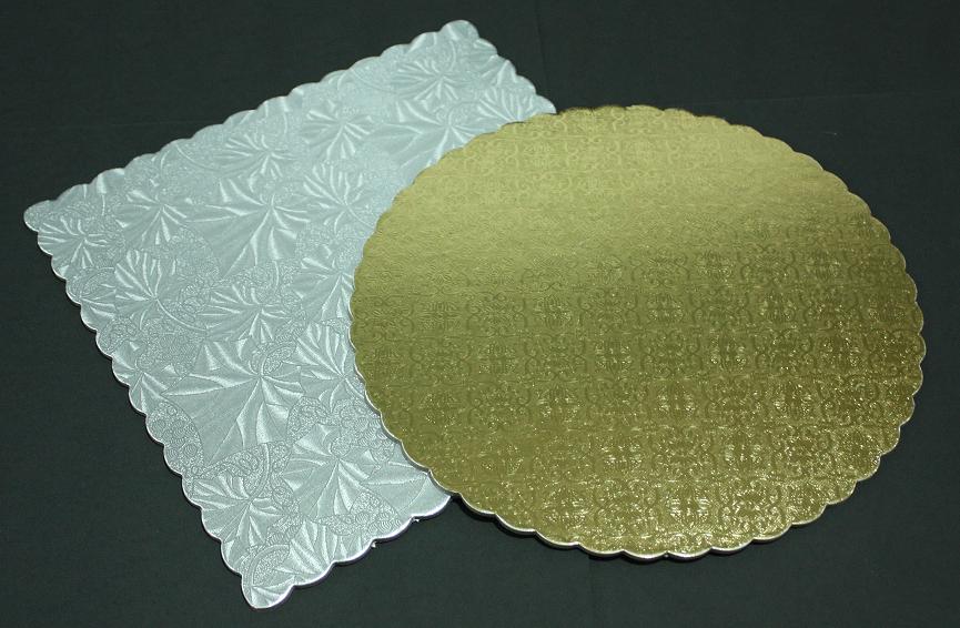 | Description | Made of thick paper based materials. They are strong and light with 3 mm thickness. They are available in gold and silver colors for both square and round shapes (the same price) The sizes are: