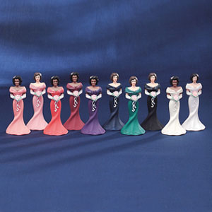 Topper is made from plastic and non edibles. It can be cleaned and easy to use. The Bridesmaid is 3.25 inch or 8.125 cm tall and the color is white.