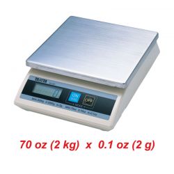 Digital Scale is perfect tools for getting an accurate weight for any of your food ingredients or dough. This scale has maximum weight of 2 kg. And the scales graduation is 2 gram. AC Adapter included. It has an oversized removed stainless steel platform and level gauge.
