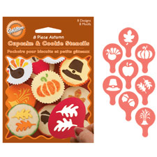 | Description | Turn plain treats into visions of the season with a stenciled Autumn design. Just place one of the fun designs over your baked treats, then sprinkle away with Wilton Cake Sparkles or Color Sugars. Also great with Color Mist Food Color Spray. 8 designs. |