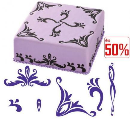 Put your personal stamp on cakes and treats with this Flourishes Cake Stamp Set. Use with Dab-N-Color. Edible colors (sold separately) to stamp an unforgettable finishing touch on Sugar Sheets. Edible decorating paper, fondant or gum paste designs.