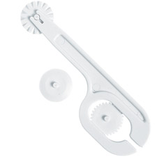 | Description | Three detachable wheels-straight, wavy and ridged-for cutting and for embossing of patterns on fondant. Light, easy-rolling design cuts at the perfect angle. Comfortable handle also stores wheels. Emboss designs in fondant!