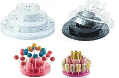 Description This three-tier Cake Pop Stand is perfect for serving ice-creams on a stick as well as cake pops and lollipop cakes. The cake Stand display is composed of two stack-able parts, one transparent and removable and one colored. The Pop stand may be used in two ways, with both of its component to display up to 27 cake pops or by using only the colored part where 28 mini ice cream sticks may be exposed.