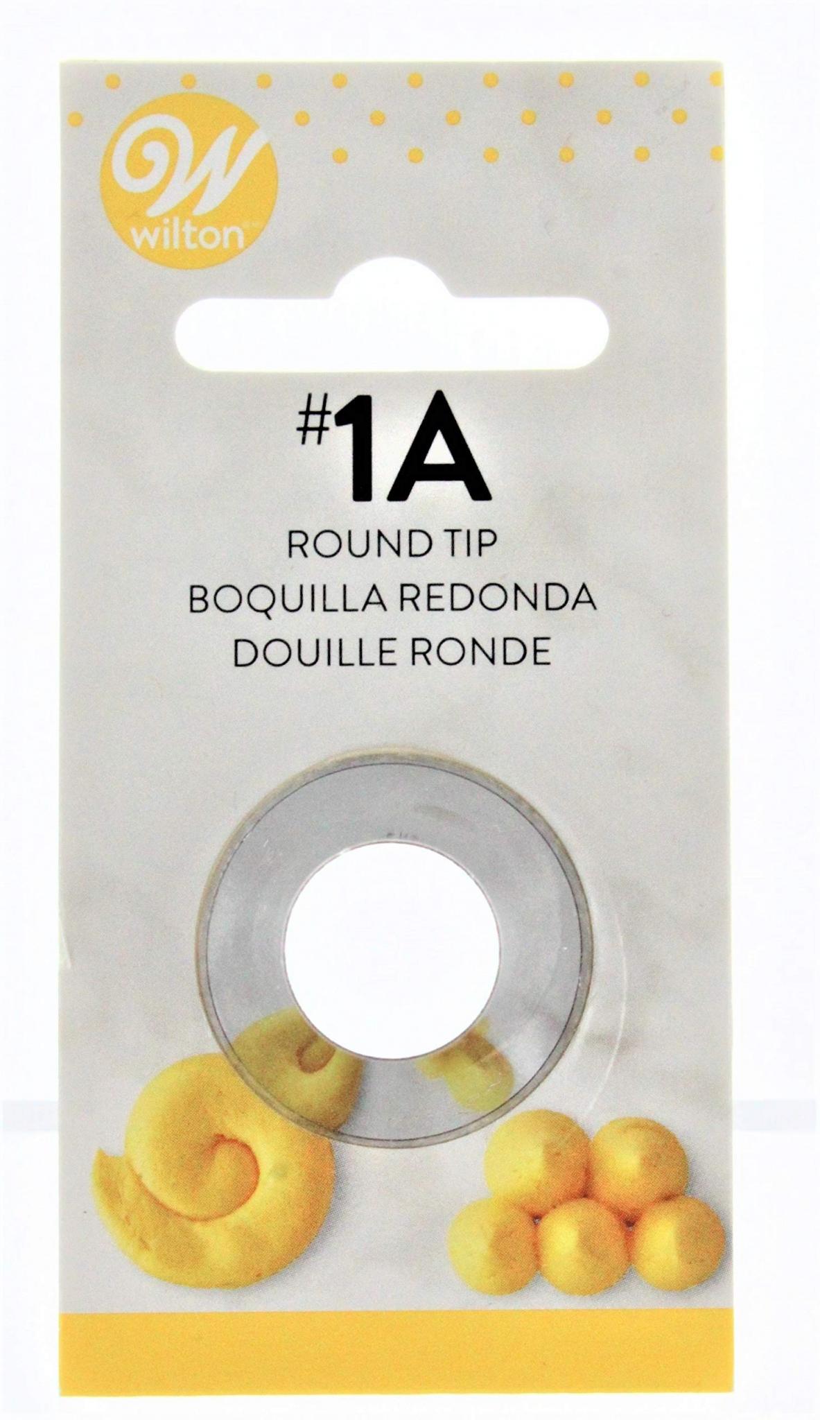 | Description | Wilton NO. 1A ROUND DECORATING TIP Bold borders, figure piping. Outline, lettering, dots, balls, beads, string-work, lattice, lacework. Popular tip for decorating swirls on cupcakes. This decorating tip is made of non-rust, nickel-plated steel. |