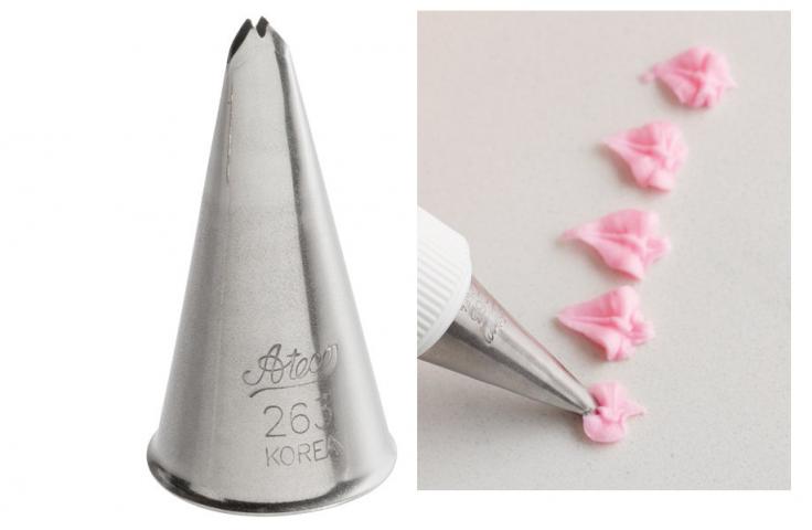 Description All your tasty treats will look professionally delicious with this Ateco 263 leaf pastry tube! For any and all occasions, this pastry tube is perfect for enhancing your edible, floral creations. Made of durable stainless steel, this tube is rust-resistant and designed to withstand repeated use without bending out of shape.