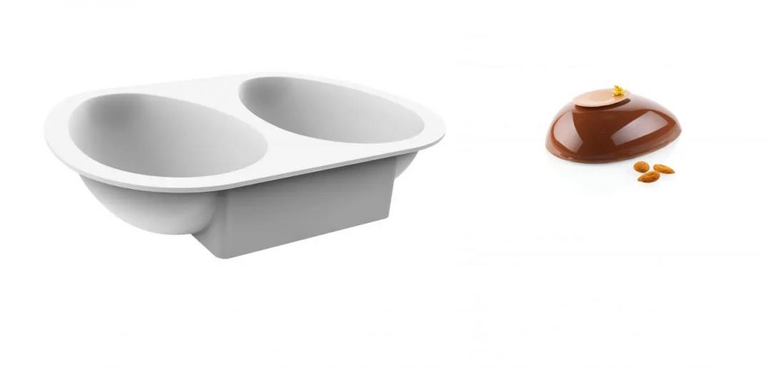Half Eggs 385 is a two cavities half egg shaped mould. Perfect to create a glazed entremet decorated with some chocolate ovals on top. The perfect solution for your Easter window.