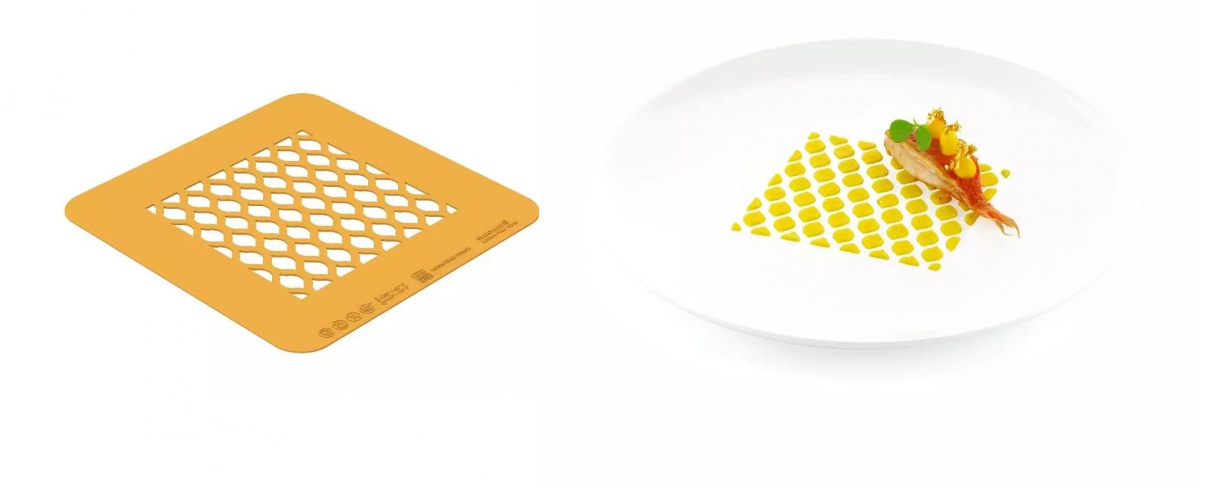 Stencil Alambra is the new stencil developed in collaboration with Chef Pâtissier Titouan Claudet for quick and perfect decorations for plated desserts or savoury preparations. The stencils, made of ultra-fine platinum silicone, allow you to create service-proof decorations in one easy step. How to use: place the stencil on the plate, spread a gel or cream with the help of a spatula and remove the stencil. The pack contains 2 stencils.
